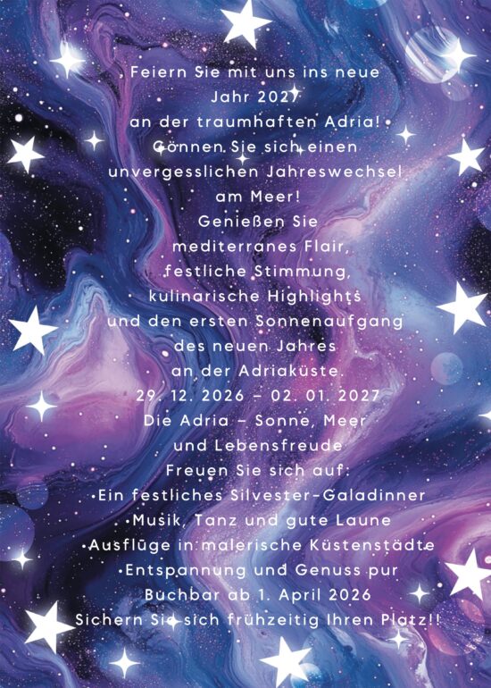 Unvergesslicher Jahreswechsel an der Adria, 29.12.2026 – 02.01.2027